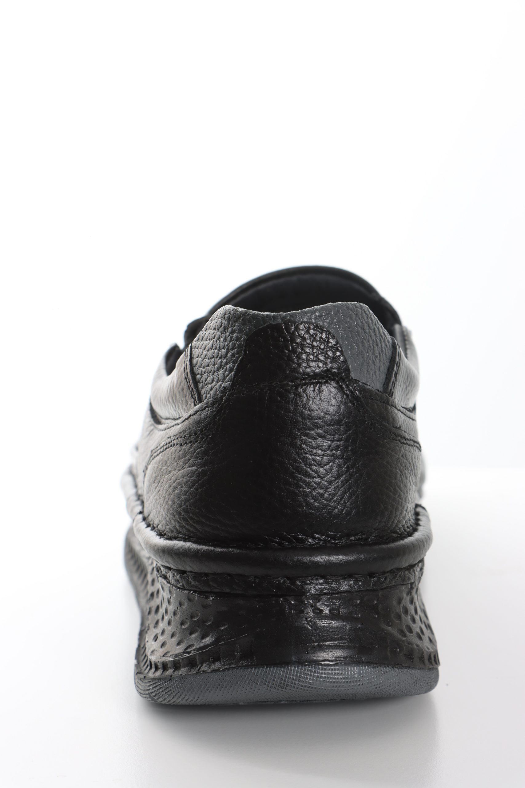 رویه کفش از چرم طبیعی گاوی ساخته شده که بهدلیل تراکم بالا و مقاومت در برابر ترکخوردگی، یکی از بهترین گزینهها برای کفشهای رسمی و طبی است. چرم گاوی همچنین ظاهری رسمی، سنگین و بسیار شیک دارد که با گذشت زمان نیز زیبایی آن حفظ میشود.
